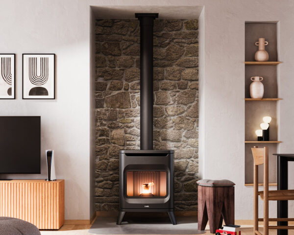 Stufa a pellet piccola e compatta, dalle forme semplici si adatta a qualsiasi ambiente. La sua porta “oblò” permette un’ampia visione della fiamma e fa ricordare una stufa a legna. Porta, top, griglia e piedini sono interamente in ghisa. Grazie all’altezza ridotta e allo scarico fumi superiore concentrico, è perfetta per essere installata in un focolare esistente.